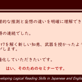 2025年11月3日(祝)13:40~16:40 3年前に開催した「論理的な英語リーディング」では、 参加者から「新鮮だった」「納得の連続だった」「読…